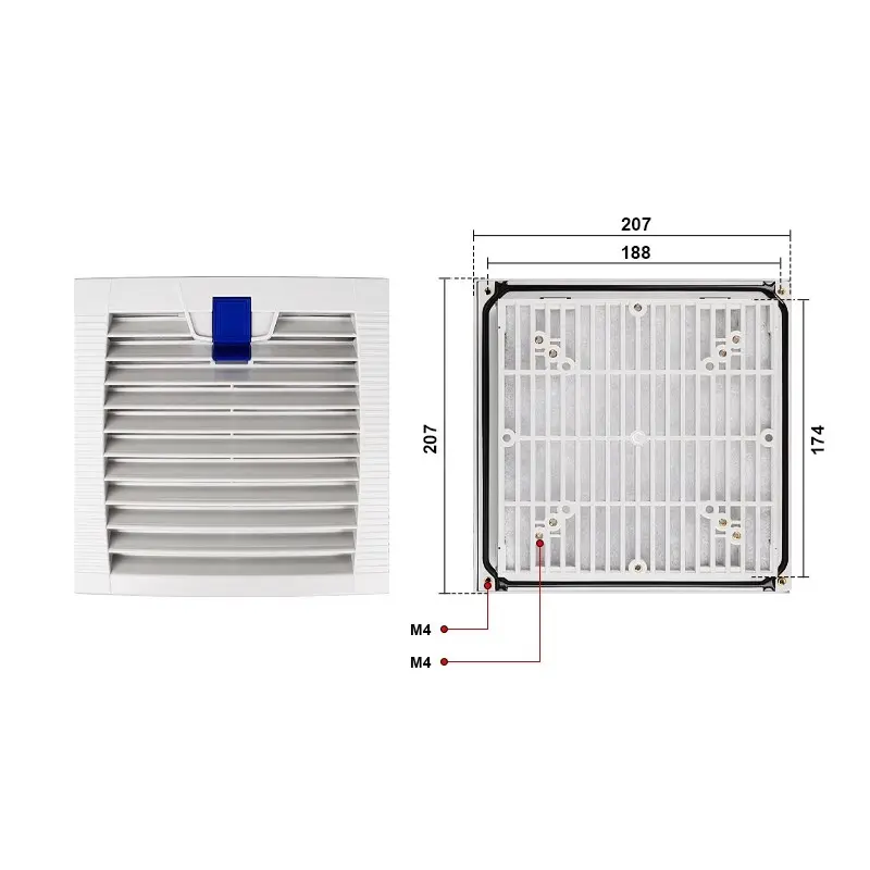 Tairgimid clúdach deannaigh lucht leanúna fuaraithe atá in-athraithe go héasca. Is féidir leis an táirge a chinntiú go n-oibreoidh an córas fuaraithe go fadtéarmach, atá oiriúnach do threalamh tionsclaíoch, caibinéid leictreonacha, príomhfhrámaí ríomhaireachta, stáisiúin bonn teileachumarsáide agus cásanna eile.